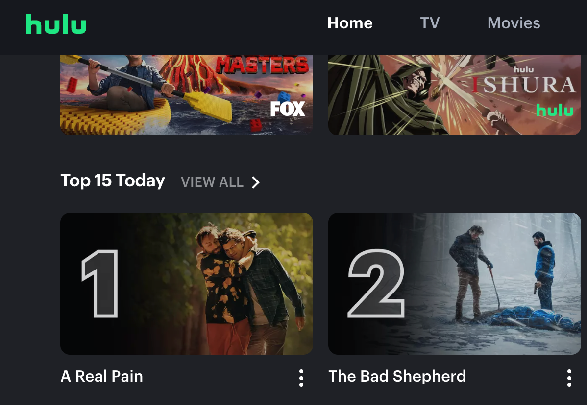 (The Bad sheppard Debuted at Number 2 in the nation on Hulu january 2025)